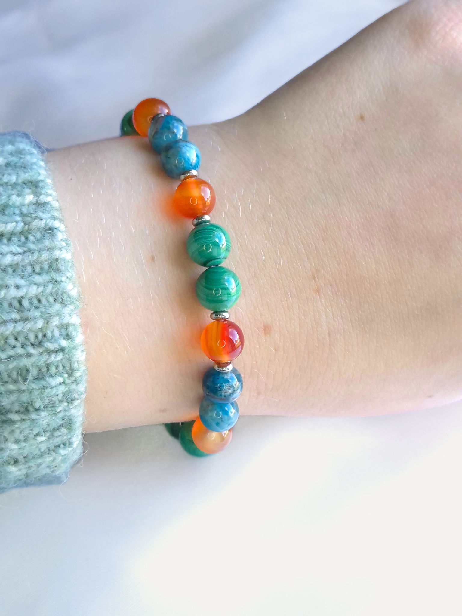 Découvrez le bracelet Arthrose / Arthrite, un bijou en pierres naturelles conçu pour soulager les douleurs articulaires, favoriser la souplesse et renforcer les articulations. Idéal pour les personnes souffrant d’arthrose, d’arthrite ou de raideurs articulaires, ce bracelet associe trois pierres aux vertus apaisantes et régénératrices : la malachite, l’apatite et la cornaline.